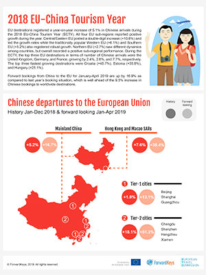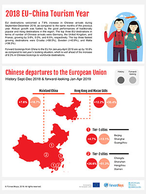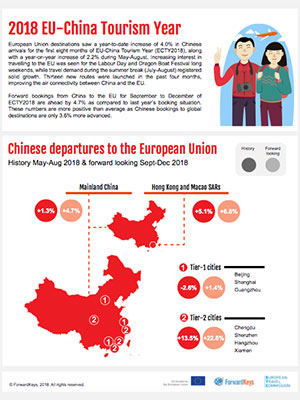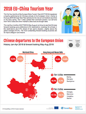 While the EU destinations remain on the top of the Chinese travellers’ wish lists, the Chinese market only represents 2% of the total international arrivals recorded in the EU. More attention needs to be paid to the growing importance of China as an origin market as well as the changing preferences and behaviour patterns of Chinese visitors.